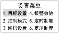 在主界面長按“SET”鍵約 2 秒或長按遙控器“MENU”鍵, 進(jìn)入設(shè)置菜單界面??扇斯みx擇不同的氣井工藝來對應(yīng)不同的主菜單顯示內(nèi)容。主菜單顯示界面分別如下: