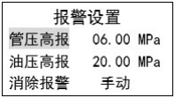 此菜單設(shè)置的是下游管線高壓報警保護(hù)閾值、上游管線高低壓報警保護(hù)閾值及消除報警方式。