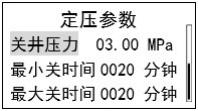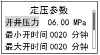 該菜單用于設(shè)置定壓制度下的自動開關(guān)井壓力及最大最小開關(guān)井時間, 壓力范圍 0~99.99MPa。